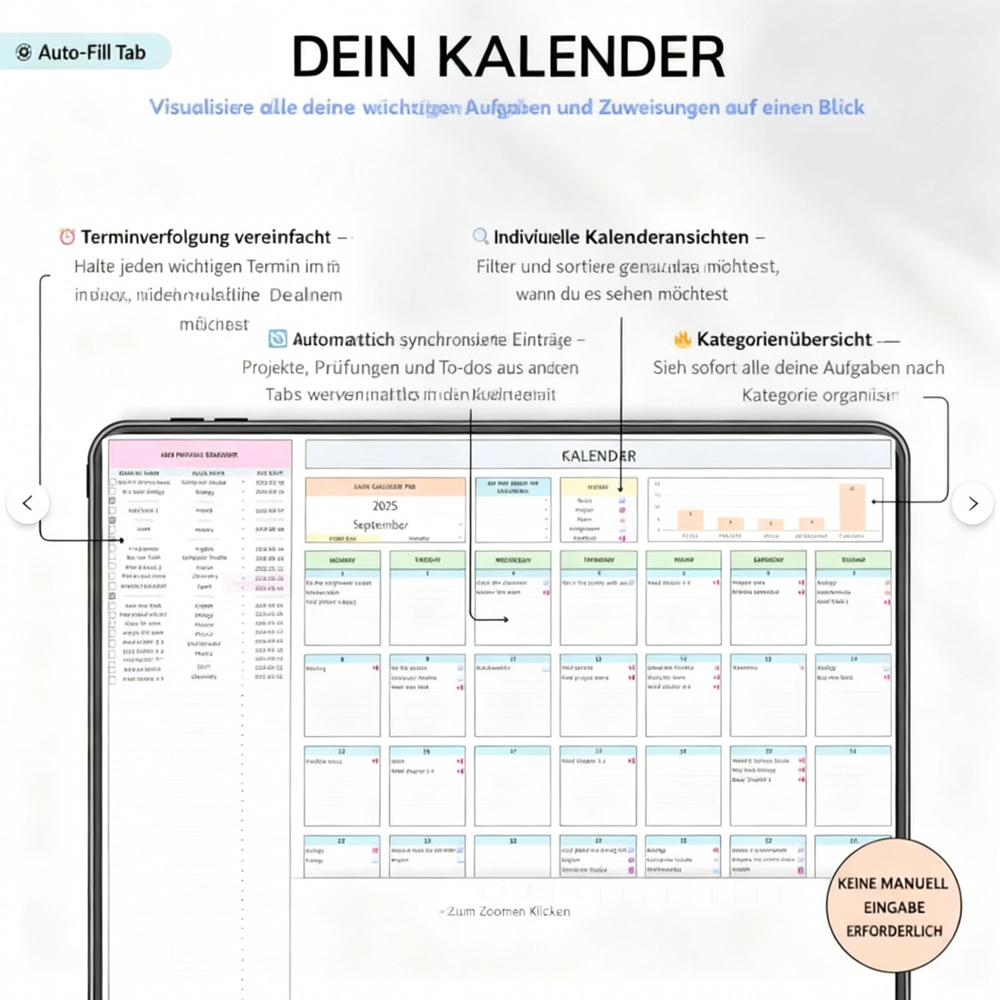 Überhaupt nicht 🙂 Der Planer ist so aufgebaut, dass du nur deine Kurse, Deadlines und Aufgaben eintragen musst. Alles andere Diagramme, Übersichten und Berechnungen läuft automatisch